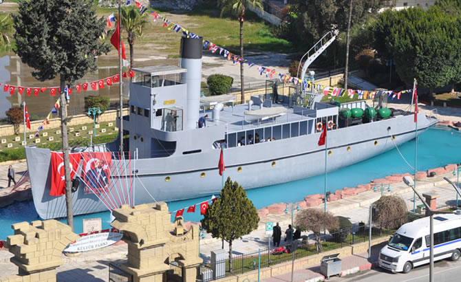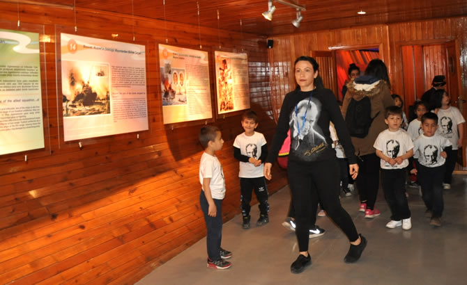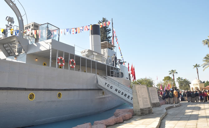Daha sonra törene katılan öğrenciler öğretmenleri eşliğinde Çanakkale Şavaşları'nda intikal rotalarına döktüğü mayınlar sayesinde itilaf kuvvetlerinin gemilerini savaş dışına iterek adını tarihe altın harflerle yazdıran Nusret Mayın Gemisi'ni gezdi.