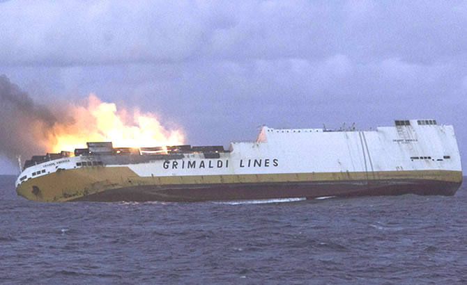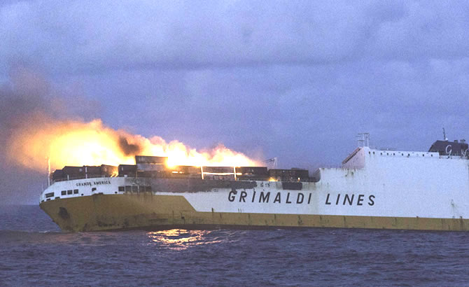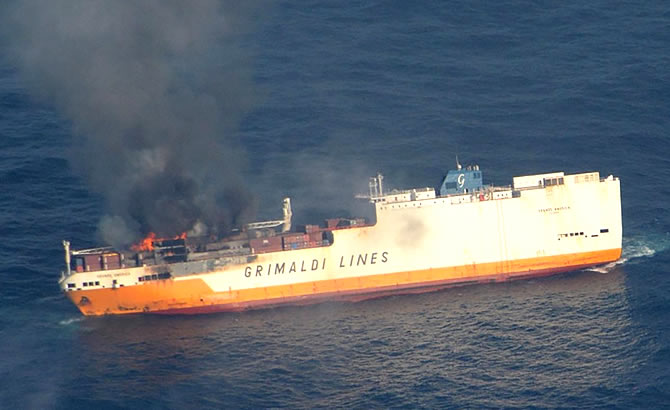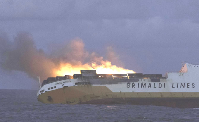 ‘Grande America’ isimli kargo gemisinde Hamburg’dan Kazablanka’ya giderken Pazar günü yangın çıktı. İtalya bandıralı 213 metre uzunluğundaki gemideki yangın kontrol altına alınamadı.