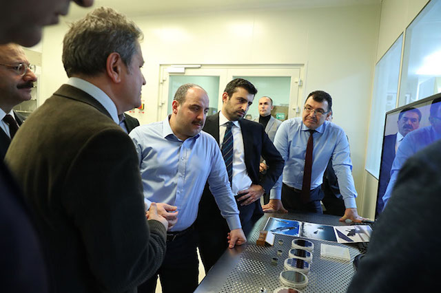 Varank, Yarı İletken Teknolojileri Araştırma Laboratuvarı'nda, milli kimlik kartları için geliştirilen temaslı ve temassız çiplerle, milli akıllı bombalarda kullanılan dedektör çiplerinin geliştirme ve üretim süreçleri hakkında bilgi aldı.