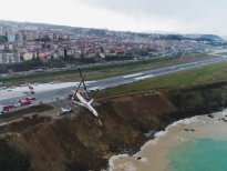 Ankara-Trabzon seferini yaparken Trabzon Havalimanı'na 13 Ocak akşamı indikten sonra pistten çıkan Pegasus Havayolları'na ait yolcu uçağı bulunduğu yerden vinç yardımı ile çıkartıldı.