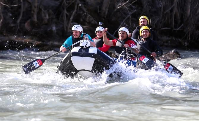 Milli sporcularla şampiyona öncesi ilk deneme raftingini gerçekleştiren Varank ve Vali Sonel, yaklaşık 5 kilometrelik parkurda heyecan dolu anlar yaşadı.