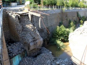 Doğal olmayan heyelan riski altında bulunan tarihi köprü son dönemde yağışların da etkisiyle yıkıldı.