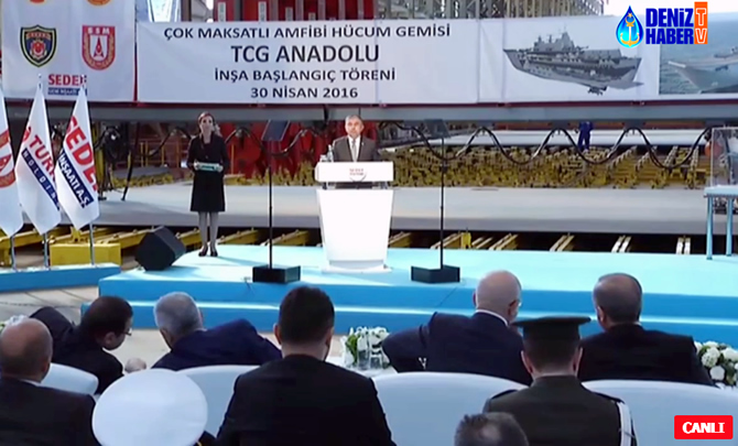 DenizHaber.TV'den de CANLI yayınlanan Cumhurbaşkanı Recep Tayyip Erdoğan katılımıyla gerçekleşen çok maksatlı amfibi hücum gemisi TCG Anadolu'nun inşa başlangıç töreni, Sedef Tersanesi'nde yapıldı.